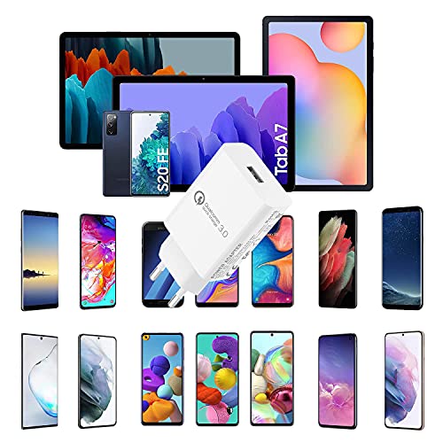 - 【Carga Estandar:2.4A Max】Este Cargador QC 3.0 cuenta con tecnología de Detección Automática y Carga Inteligente, este cargador rápido de pared puede detectar de forma inteligente el dispositivo enchufado, y le ofrecerá una corriente más oportuna de carga optimizada. Carga de forma normal a los dispositivos sin QC, como Xiaomi Mi band 3, iPhone 11,X 8 Plus 8 7 Plus 7 6s Plus 6s SE, iPad Pro /Mini Air iPad 4 3,Oneplus 8 7 7T 6T,MP3,cámaras,altavoces Bluetooth, batería externa, lector electrónico,e
