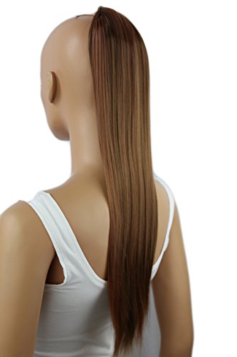 Prettyshop - Extensiones de pelo tipo cola de caballo de 60 cm, resistentes al calor, diseño liso marrone mescolare #9H30 HC27