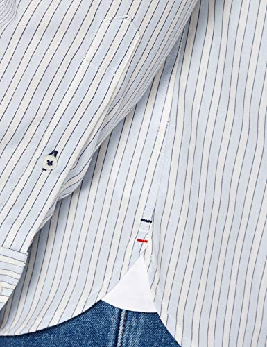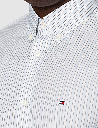 Tommy Hilfiger Bold Stripe Shirt Camisa, Breezy Blue/Ivory/Yale Navy, M para Hombre