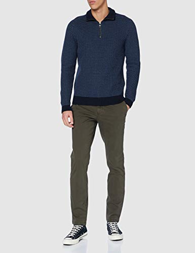 Tommy Hilfiger Bold Texture Zip Mock Suéter, Faded Indigo, M para Hombre
