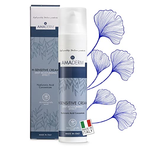 AMADERM H-Sensitive Men Cream 100ml | Crema Facial Hombre Hidratante con Ácido Hialurónico Concentrado | MADE IN ITALY Crema Hidratante Anti-fatiga 24H Ideal para el Afeitado | FENOXIETANOL FREE