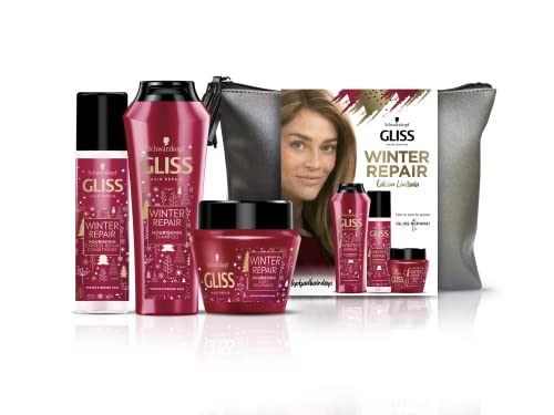 - Neceser Winter Repair de Gliss compuesto por Champú Winter Repair 250ml, Mascarilla Winter Repair 300ml y Acondicionador Exprés Bifásico Winter Repair 200ml
