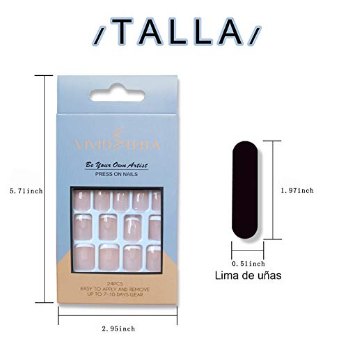 - ā£Lo que obtienes ā£el juego de uƱas postizas incluye 24 tamaƱos diferentes de uƱas postizas, 1 mini lima de uƱas y 24 piezas de adhesivos para uƱas y un paquete de algodón para limpiar.
