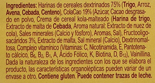 - BUEN SABOR SIN GRUMOS: La nueva fórmula mejorada de Blevit Plus ColaCao para Biberón a partir de trigo, arroz, avena, cebada, centeno y ColaCao, consigue una papilla de textura suave, homogénea y de agradable sabor.