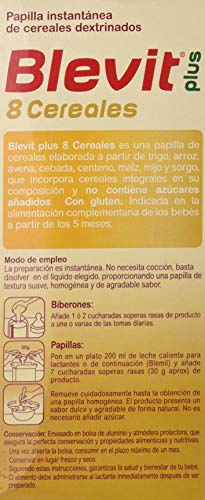 - DISOLUCIÓN ESPECIAL PARA BIBERÓN: La nueva fórmula mejorada de Blevit Plus 8 Cereales para Biberón favorece su solubilidad adaptándose al grado de maduración digestiva de tu bebé.
