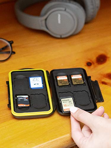 - PROTECCIÓN SEGURA DE BOMBILLAS: el sello de goma evita la MEJORA del agua. Este estuche es perfecto para almacenar de forma segura hasta 3 x CompactFlash (36,4 × 42,8 × 3,3 mm) y 12 tarjetas de memoria tipo SD, SDHC o SDXC (32.0 × 24.0 × 2,1 mm) y hasta 21 tarjetas Micro SD tipo, Tarjetas de memoria SDHC o SDXC (11,0 × 15,0 × 0,7 mm). Almacenar sus tarjetas de memoria en el estuche ofrece la ventaja de mantener todas sus tarjetas de forma ordenada y tiene juntas