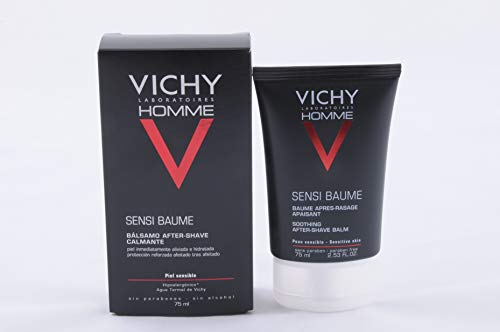 - Vichy Homme Sensi Baume Balsamo After-Shave Calmante 75 Ml está indicado para hombres con piel sensible que presentan irritaciones o rojeces tras el afeitado