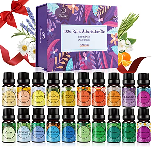 Aceites Esenciales para Humidificador, OUKZON 20x5ml 100% Natural Puro Set de Regalo de Aceite Perfumado para Difusor Aroma, Aromaterapia, SPA, Masaje - Lavanda, Ylang Ylang, Limón, Menta, etc